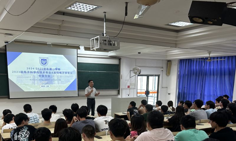 9月11日,太阳城网络赌博平台 2023级电子科学与技术专业、柔性电子学专业2024-2025学年第一学期期初年级大会在教2-101顺利召开,本次会议由辅导员梁博主持,2023级电子科学与技术专业、柔性电子学专业全体学生积极参会。