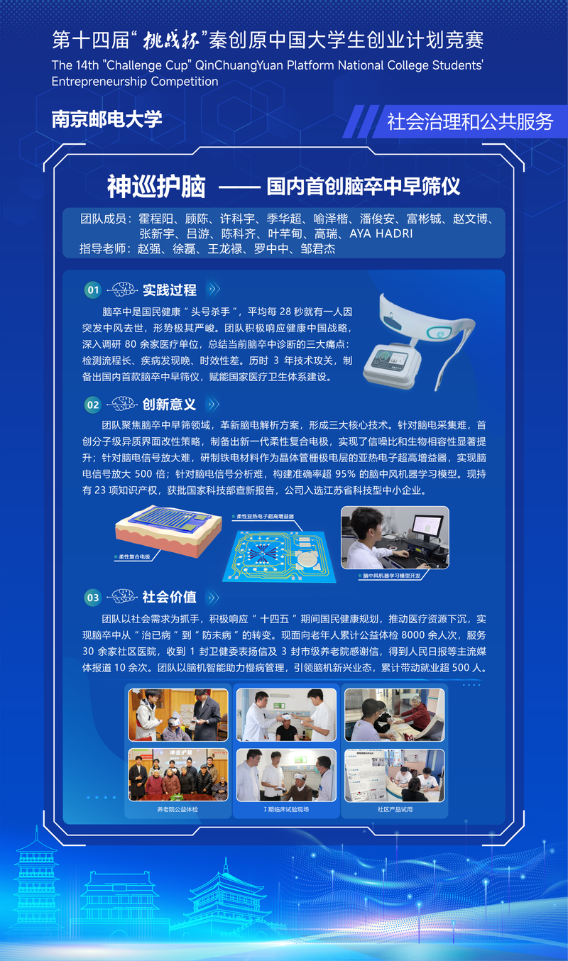 我平台 金奖项目“神巡护脑——国内首创脑卒中早筛仪”