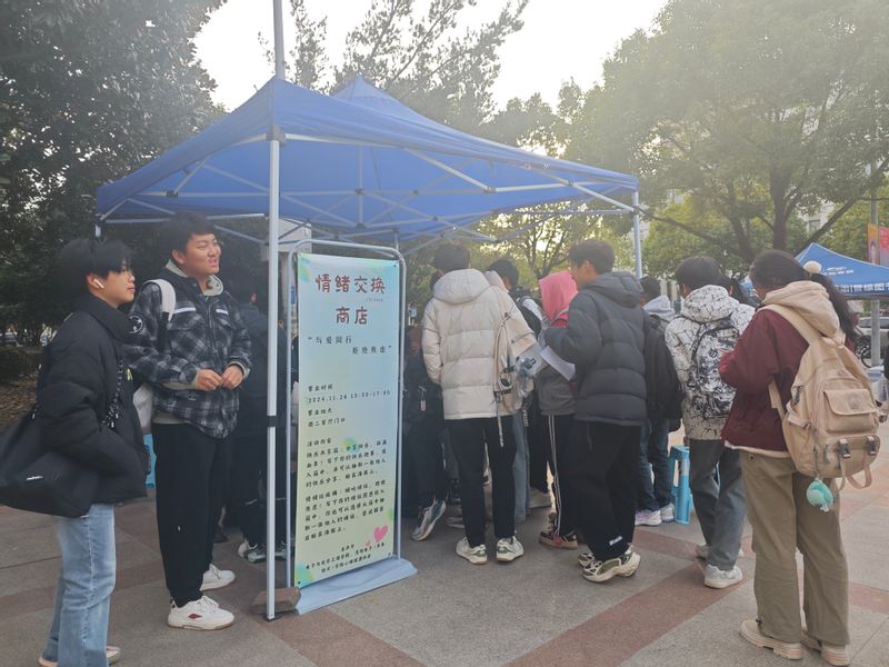 11月26日,太阳城网络赌博平台 心理健康协会开展了“情绪交换商店”心理健康主题活动,为冬日里的校园增添了一抹亮色。此次活动旨在为同学们提供一个倾诉情绪、分享快乐的平台,帮助大家释放压力,收获正能量,塑造积极乐观的“阳光心灵”。