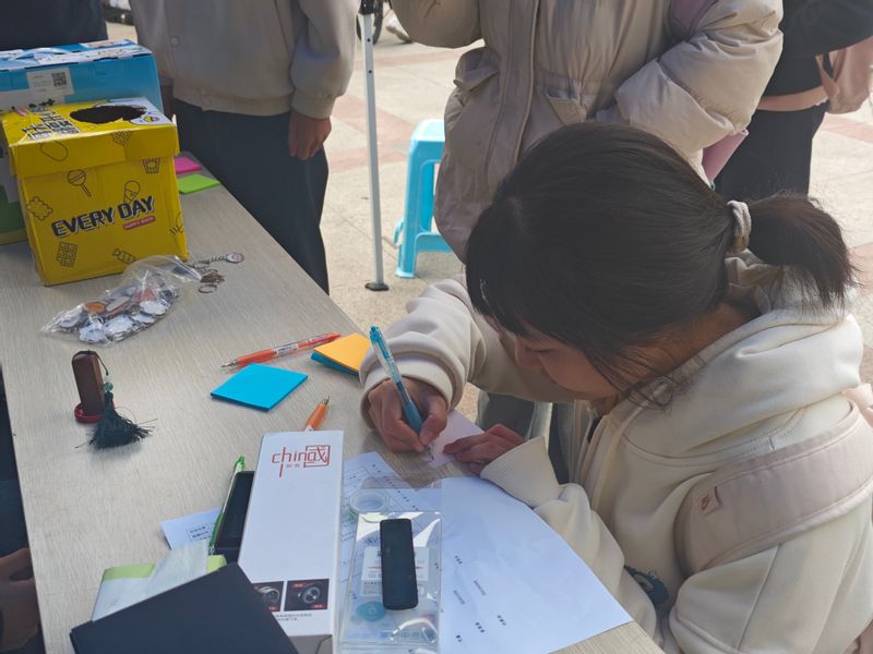 活动当日,现场设置了两个特色区域,分别是“快乐共享箱”和“情绪垃圾桶”。在“快乐共享箱”前,同学们积极写下自己生活中的快乐趣事并投入箱内,同时还能抽取他人分享的快乐,并将其贴在海报上,让快乐得以传递。在“情绪垃圾桶”区域,同学们则勇敢地面对自己心中的烦恼或困惑,将其写下并投入箱中,同时也可以抽取他人的烦恼或困惑,尝试解答后贴在海报上。现场每一位参与活动的同学都能获得一份小奖品,作为对自己勇敢表达的奖励,在寒冷的冬日里再捕获一丝温暖。
