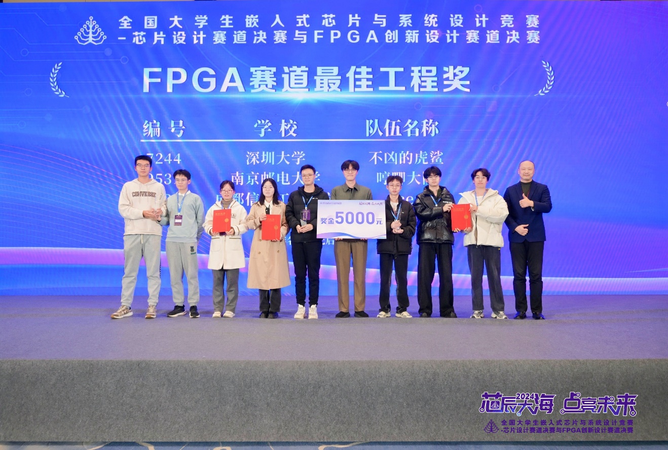 12月1日,2024年全国大学生嵌入式芯片与系统设计竞赛-芯片设计赛道决赛与FPGA创新设计赛道决赛在南京落下帷幕。南京邮电大学参赛队在该项赛事创历史最好成绩,获全国一等奖10项、其中我平台 学生获得国家一等奖7项,并夺得2项最高奖杯,最佳工程奖和最佳创意奖各1项。