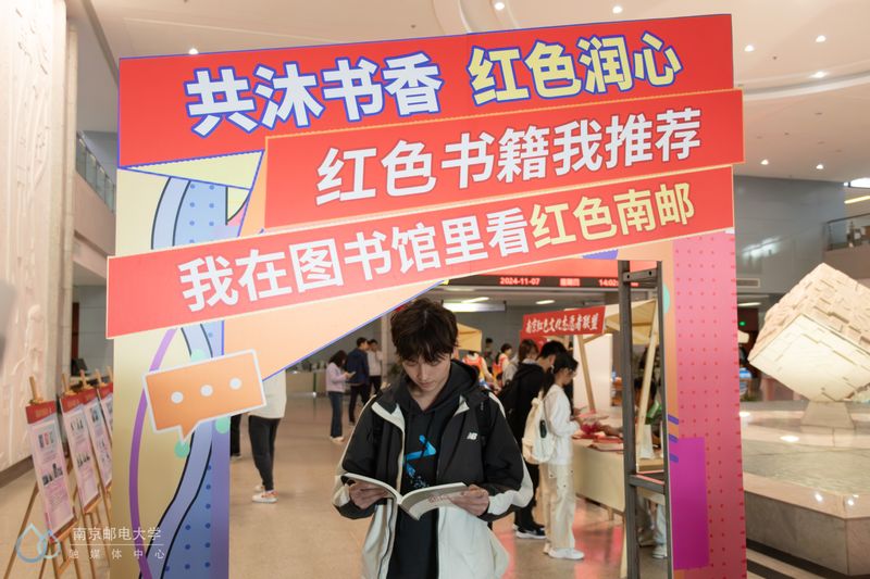 按下快门,人与书同入镜,读一本红色书籍,展一份文化传承,在图书馆遇见红色南邮,在心中埋下炽热的火种。