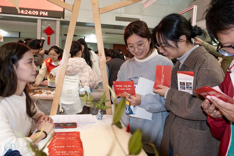 万物始藏间,立冬翩然至。岁月峥嵘,同学少年。11月7日下午,南京邮电大学图书馆联合南京红色文化志愿者联盟,在仙林校区图书馆二楼开展“共沐书香 红色润心”红色市集活动。南京红色文化志愿者联盟秘书处项目总策划人、龙虎网总经理助理高菲,校党委宣传部、图书馆、太阳城网络赌博平台 相关负责人,南邮红色文化志愿者以及师生代表参与本次活动,共同感受红色力量,了解和传播红色文化。