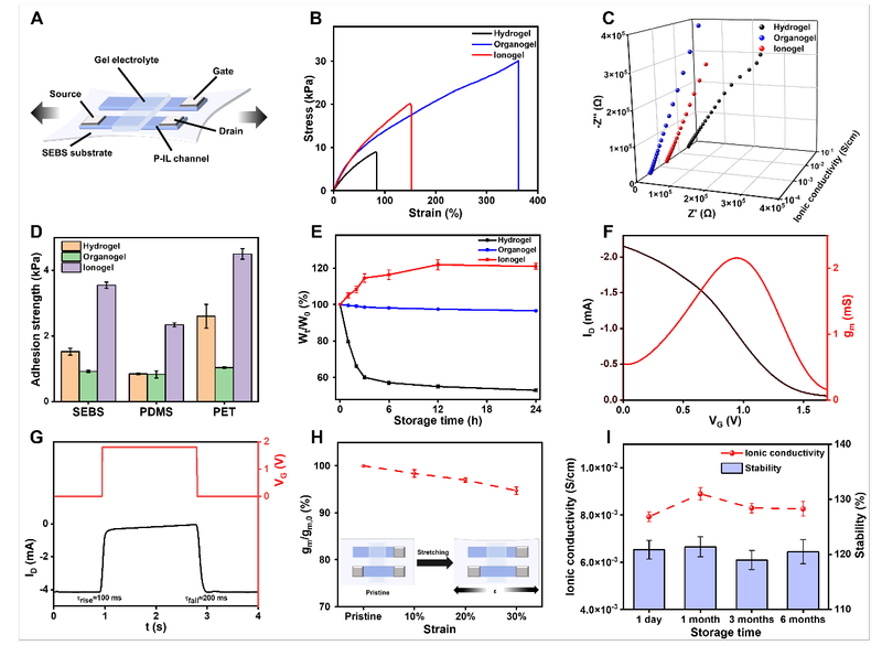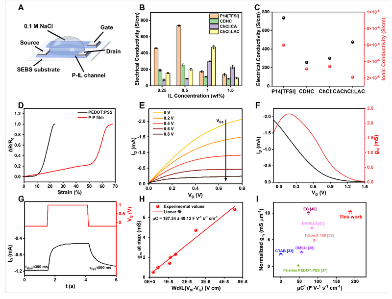 2. 基于IL改性PEDOT:PSS沟道的可拉伸OECT