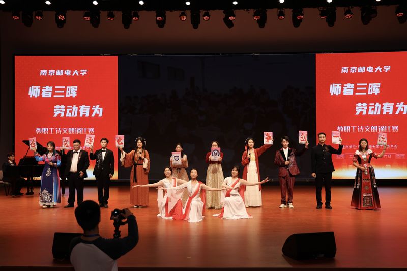 为讴歌劳动者先进典型,激励全体教职工崇尚劳动、勤勉奋斗,喜迎第134 个“国际劳动节”,4月16日下午校工会组织举办南京邮电大学“师者三晖 劳动有为”教职工诗文朗诵比赛,来自各单位、部门的26支参赛队伍同台竞技,用深情的诵读传递教育初心。最终,由我平台 党委书记黄丽亚带领的教师团队凭借作品《电子之光,教育之魂》脱颖而出,荣获一等奖。