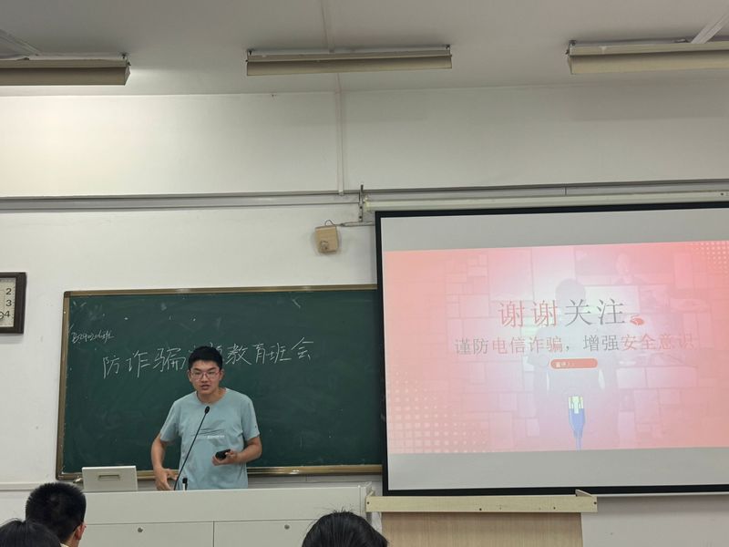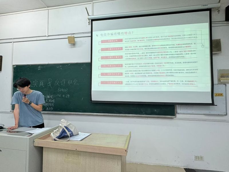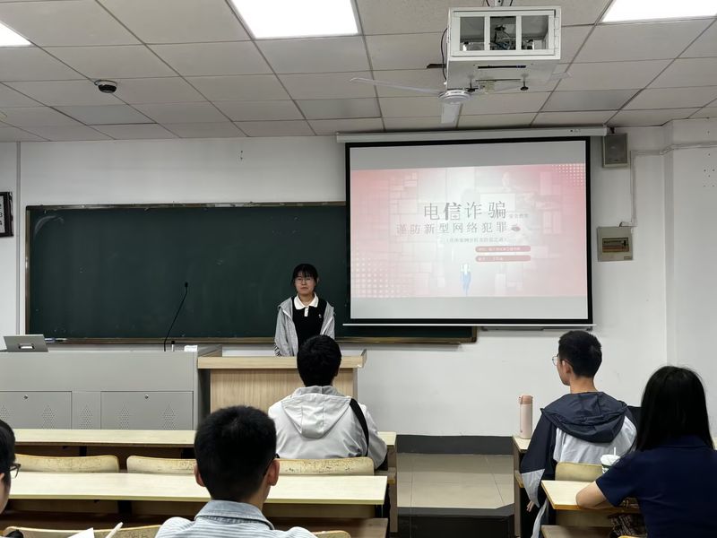 活动以“预防电信网络诈骗,创建平安无诈班级”为主题,通过反诈知识讲解、典型案例剖析、反诈视频学习、分组讨论互动等形式展开。各班级安全员作为主讲人,结合校园高发的网络购物诈骗、兼职刷单诈骗、冒充熟人诈骗等案例,深入揭露诈骗手段,强化学生风险防范意识。活动中,学生集体观看了《2024年小柚特烦恼系列安全课程》及保卫处官网精选反诈案例视频,并围绕“如何避免个人信息泄露”“谨防租售账户陷阱”等议题展开热烈讨论。