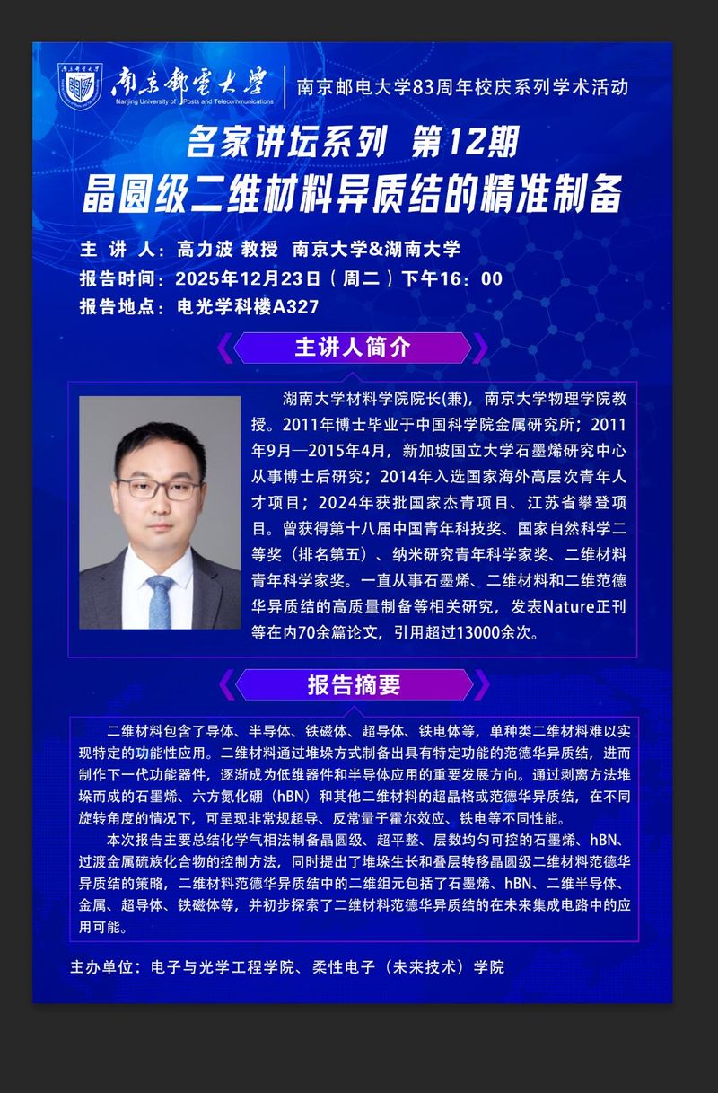 学术报告:晶圆级二维材料异质结的精准制备